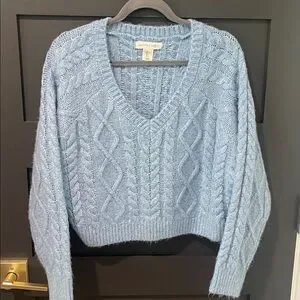 Happily Grey Cropped Heather Light Blue CottageCore Cable knit Sweater Size L