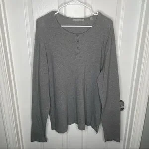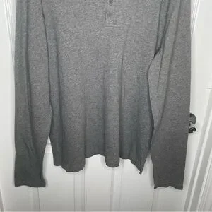 Vince Raw Edge Long Sleeve Henley T-Shirt in Gray L
