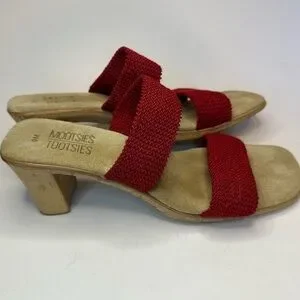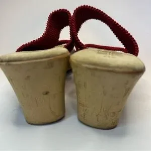 Mootsies Tootsies Red Sandals Woven Straps Cork Heel Size 9 Y2K Slip On EUC