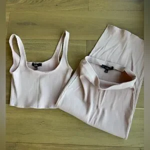 Lulus Pink Ribbed Two-Piece Tank & Skirt Set