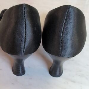 Women's black ballet flats with a small bow detail at the toe. Padded insole. Smooth, matte upper with subtle sheen. Very little wear. Smoke free home. 7.5, fits snug.