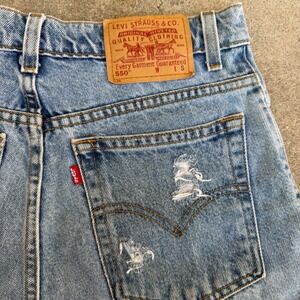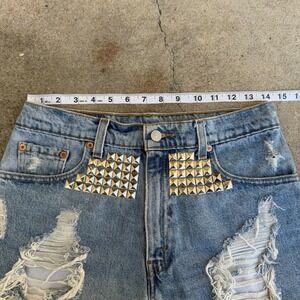 Vintage Levis 550 Studded Distressed Denim Shorts Light Wash High Rise Womens 11