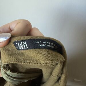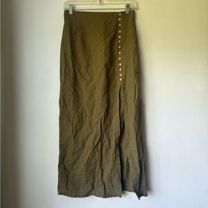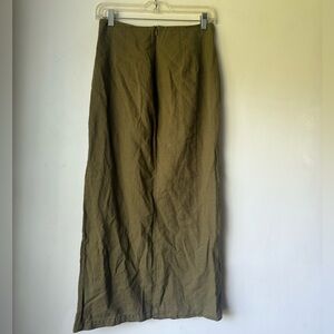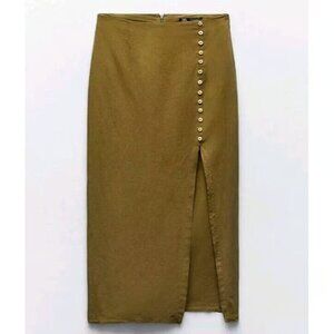 Zara Khaki Green Button-Front Side Slit Maxi Skirt S. Faux button deailing and side slit. perfect for summer outfits. cotton linen blend. back zipper. waist is 14", length 36"