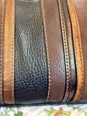 Fossil Vintage Brown Black Striped Leather Shoulder Bag Y2K Patchwork Purse