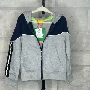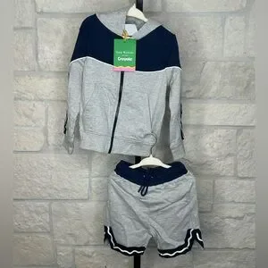 Isaac Mizrahi in Collaboration with Crayola Hoodie and Matching Short set. Hoodie Size 4 Full Zip with Front Pockets. Shorts with Drawstring Waist One Back Pocket. Heather Grey Navy Trim and Crayola Signature Wavy White Embellishments. New With Tag