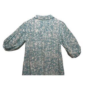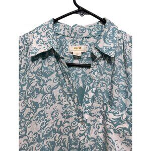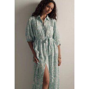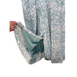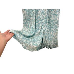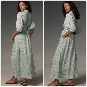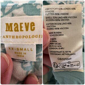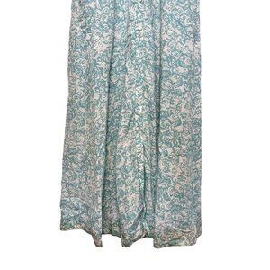 Maeve Anthropologie Aqua Floral Maxi Dress XX-Small Linen Blend Button-Front Belted Pockets