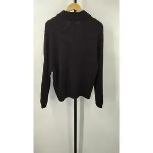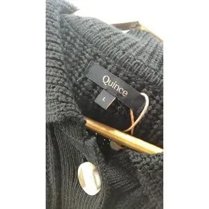 Quince Women Australian Merino Wool Collared Cable Cardigan Black L
