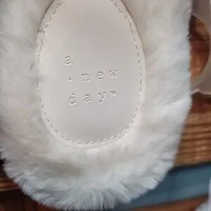 A New Day Women's Cream Faux Fur Scuff Slippers - Cozy & Stylish - Size 8