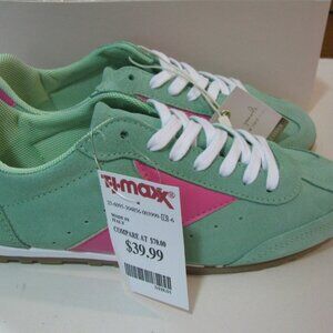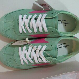 * Mila Paoli Leather Sneaker 7 1/2 8 NWT $70 Mint Green & Pink Lace Up Shoe
