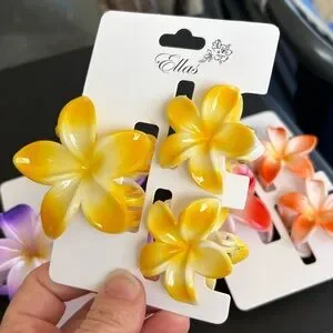These glossy flower clips feature a soft ombré design inspired by Hawaiian frangipani blooms. Perfect for summer hairstyles, beach days, vacations, or everyday wear.