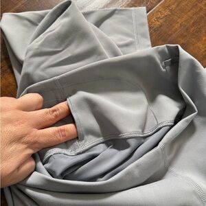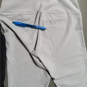 Soft and flexible gray leggings.