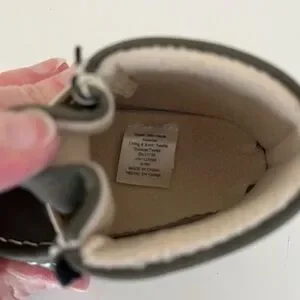 Soft olive green moccasin-style boots for kids. Cushioned interior for gentle support and all-day comfort. Easy lace closure with cream contrast laces and stitching. Versatile style perfect for everyday wear.