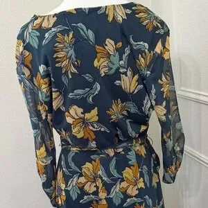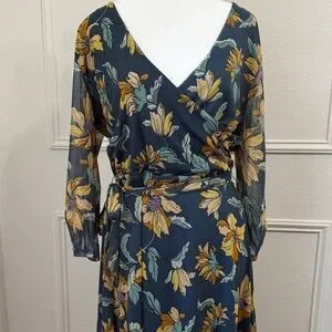 Floral Wrap overlayed Maxi Dress 3/4 sleeve in Teal and Mustard✨Large