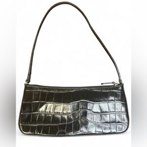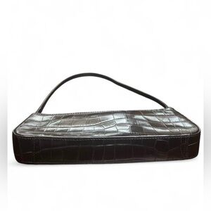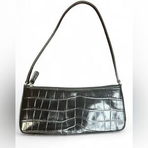 Vintage genuine Italian leather black baguette mini shoulder bag/purse.
