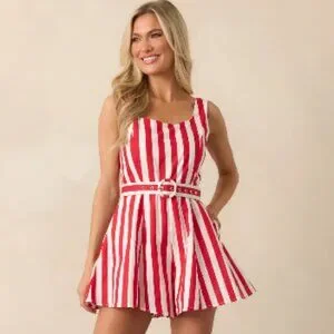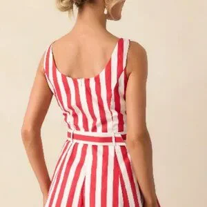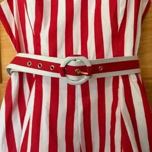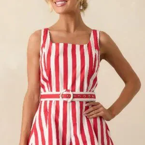 Prosperina NEW Red White Stripe Belted Flared Leg Romper size L