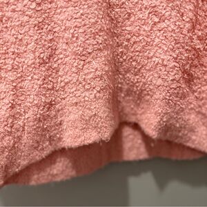 Soft bouclé knit sweater in a warm pink hue. Relaxed crewneck silhouette for everyday comfort. Lightweight yet plush texture for cozy layering. Easy to pair with jeans or skirts for a casual look.