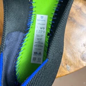 Stylish black flats with blue accents. Comfortable and eco-friendly design.