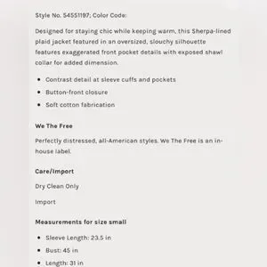 Measurements for size small