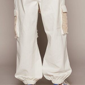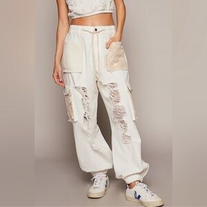 Wide Leg joggers with lace accents. Comfortable and trendy design.