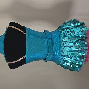 Weissman Turquoise Metallic Sequin w/ Hot Pink Leotard Dance Costume with Belt