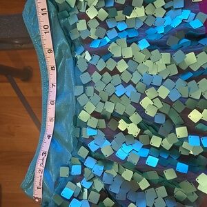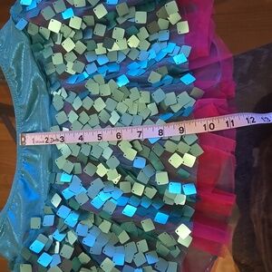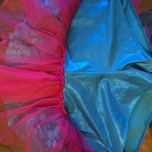 * Pull on Flared Skirt with Large Square Turquoise sequins layer over hot pink tulle skirt with attached Turquoise shorts