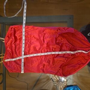 * hot pink camisole leotard with beige adjustable straps