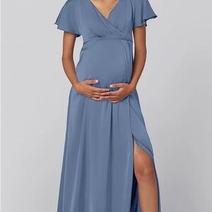 Kennedy Blue Tate Maternity Elegant Dusty Blue Satin Wrap Maxi Dress
