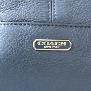 Coach tote in dark blue leather and silver tone hardware. Spacious and stylish for everyday use.