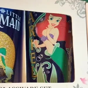 Two Disney The Little Mermaid drinking glasses featuring Ariel artwork. Colorful, collectible design for Disney fans.
