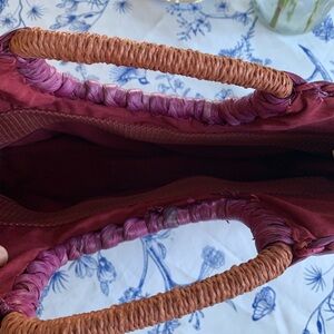 Vintage Wicker Stylish woven straw tote in deep plum. Lightweight and roomy for everyday use. Comfortable top handles for easy carrying. Perfect for casual outings and summer looks.