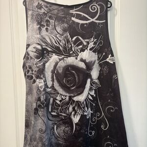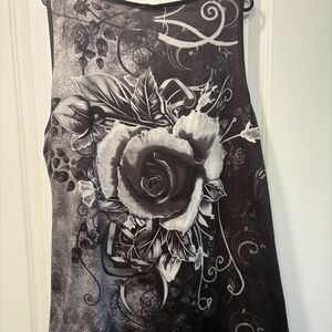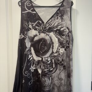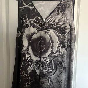 Stylish tank top featuring a bold floral pattern in black and gray. Ideal for adding a touch of elegance to your wardrobe.