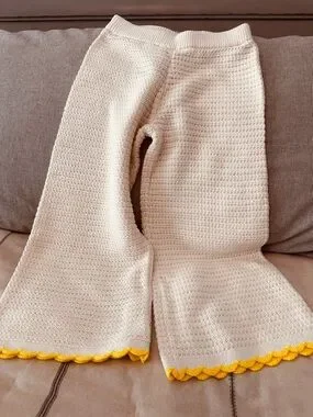 GAP Crocheted Flare Pants with Yellow Scalloped Trim