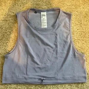 Sleeveless cropped tank in a soft shade. Seamless knit with subtle perforated ventilation. Adjustable drawcord at hem for a secure fit. Stretchy, breathable fabric for studio or gym sessions.