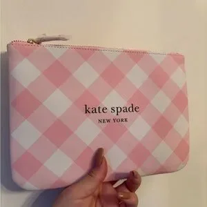 Kate Spade Pink Checkered Cosmetic Bag Mean Girl Plaid Millennial Pink Y2K
