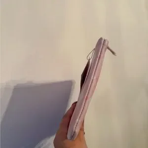 NEW! Kate Spade cosmetic bag made of a nice thick thatched texture vinyl. Bag has a few small, almost invisible scuffs. Please look at photos closely if you are picky. Nice jumbo size. Measures 10” W x 7” H