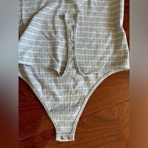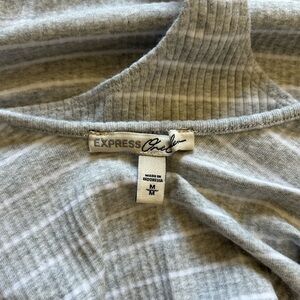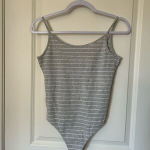 NWOT Express Women's Gray and White Striped Bodysuit Size M