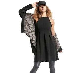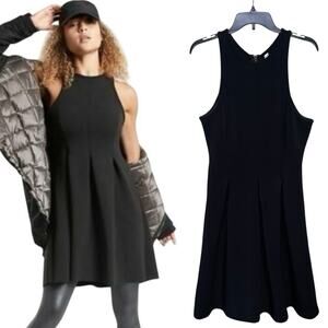 This Athleta En Route Scuba dress is perfect for any occasion! The neoprene knit material is stretchy and comfortable, while the fit and flare silhouette flatters your figure. The black color is classic and versatile, and the tall size is perfect for taller women. The dress features a pleated skirt and a zip closure. Get ready to turn heads in this beautiful dress! Excellent pre-owned condition.