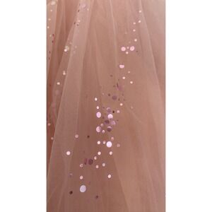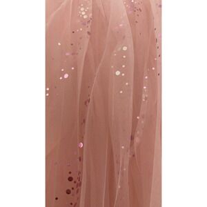 Beautiful dusty rose pink dress featuring soft layered tulle with scattered sparkle accents.