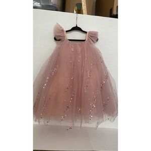 Girls Dusty Rose Pink Glitter Tulle Tutu Dress Sz 3T Flutter Sleeve Flower Girl