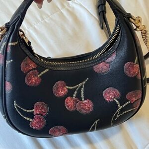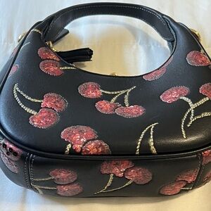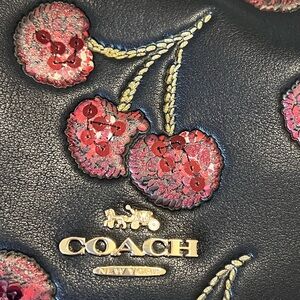 Coach Black Leather Shoulder Bag with Cherry Sequin Embroidery
