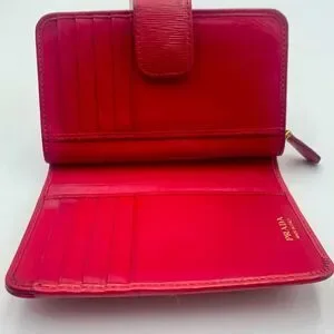 Auth PRADA Small Bifold Fucshia Saffiano Leather Wallet Preloved Very Good
