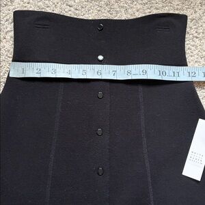 Classic black high-waist pencil skirt with front button detailing. Sleek, tailored silhouette for polished everyday or office looks. Comfortable stretch fabric that holds shape and flatters the waist. Versatile black color that pairs easily with tops and blazers.