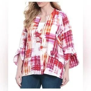 NWT ALI MILES Pink Tie Dye Linen Button Blazer Jacket Tulip Sleeve Size 1X