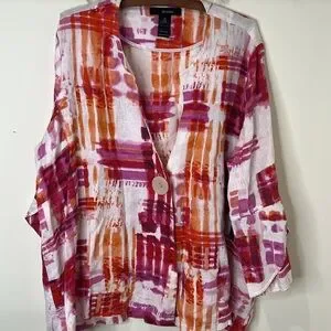 Ali Miles Plus Size 1X Abstract Tie-Dye Print One Button Hem Jacket blazer.