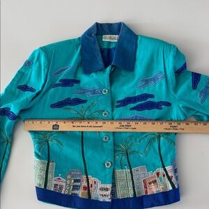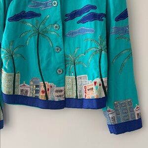 Vintage Patchington Palm Tree Blazer Womens Small Cityscape Jacket Y2K Cotton