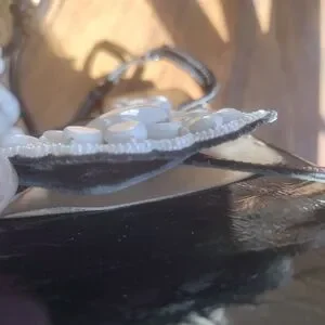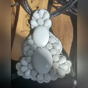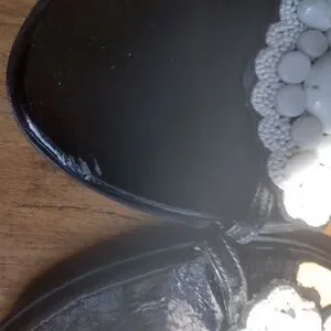 Small nick at toe, and small separation under beads (last 2 pictures), not visible when wearing Separation can be glued back in place