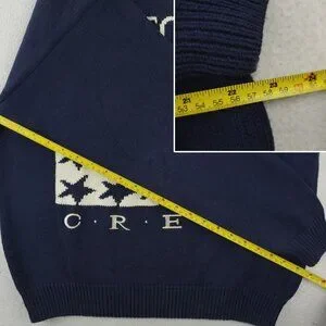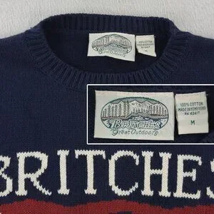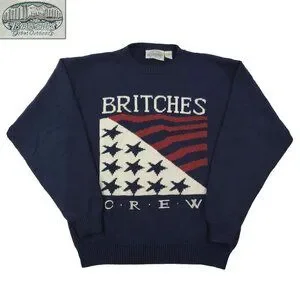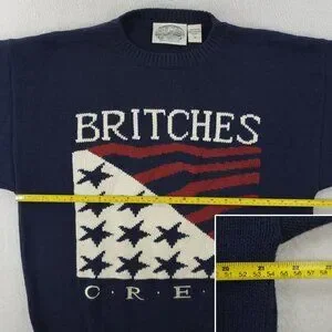 Vintage Britches Great Outdoors 100% cotton sweater with American flag knitting and embroidered "Crew", men's size medium. I have included exact measurements, so you'll know if this fits you or not. Ships safely in a sealed padded polymailer :)