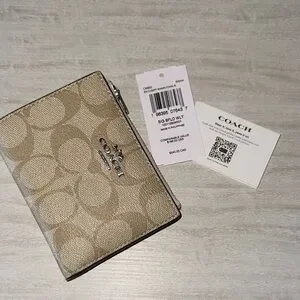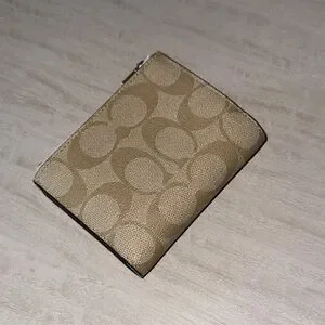 Elegant Coach wallet in beige with iconic logo design. Ideal for daily use.