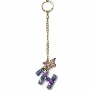 Purple Pink Hearts 'H' Butterfly Tassel Plastic Bag Charm Keychain