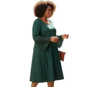 Nanette Lepore Dress Lace Sleeve Evergreen 22W